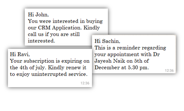 User can send personalized whatsapp messages by importing an excel file with multiple columns. This also comes in handy when someone wishes to send transactional messages, reminders etc