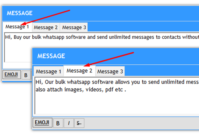 Automatically create multiple variations of the message to send to all contacts and avoid blocking of account. Because its easy to track spamming when someone sends the same message to multiple numbers that are not in the contact list.